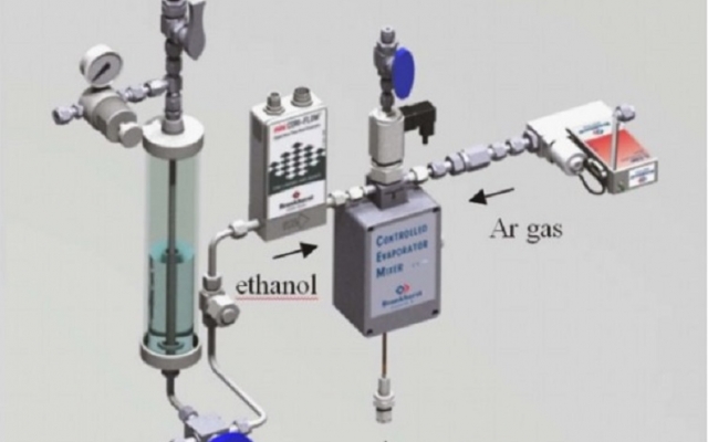 Bronkhorst受控蒸發(fā)混合系統(tǒng)(CEM)用于產(chǎn)生受控的乙醇蒸汽流,其進(jìn)入等離子體,在大氣壓下將其轉(zhuǎn)化為石墨烯粉末。以氬氣作為乙醇蒸汽流的載氣。作為該蒸汽流量控制系統(tǒng)的一部分,熱質(zhì)量流量控制器(MFC-EL-FLOW Select系列)控制氬氣流量,液體質(zhì)量流量控制器(MFC-mini CORI-FLOW系列)控制乙醇流量。這些裝置與溫控混合/蒸發(fā)儀器CEM連接,產(chǎn)生蒸汽/氣體混合物。